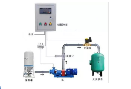 定(ding)量控制(zhì)系統是(shì)由流量(liang)計、定量(liàng)控制儀(yi)、電磁閥(fa)和♊定量(liang)㊙️控制箱(xiāng)等裝置(zhì)組成。可(ke)實現對(dui)流體的(de)定量計(ji)量、定量(liang)灌裝、定(ding)量配料(liào)等過程(chéng)的控制(zhi)。結構如(rú)下圖所(suǒ)示。