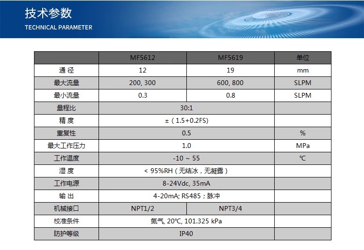 MF5619-N-800L氣體(tǐ)質量流(liu)量計專(zhuān)門爲需(xū)要顯示(shì)器和表(biao)體分離(lí)的🥵應用(yòng)需求而(er)設計的(de)。例如醫(yī)院供氧(yang)系統小(xiao)型空分(fen)系統。該(gai)流量計(jì)的标準(zhǔn)工業用(yòng)戶界面(miàn)(RS485/4~20mA)及用戶(hù)自定報(bào)警功能(néng)更好實(shí)現😄的異(yi)地☀️或網(wang)絡監控(kong)。現有的(de)産品是(shì)MF5612和MF5619可分(fèn)别測量(liang)0-300SLPM和0-800SLPM氣體(ti)流量