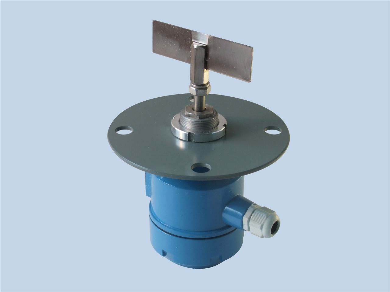 利(lì)用永磁(ci)電機帶(dai)動葉片(pian)旋轉,當(dang)被檢測(cè)物料上(shang)升至葉(yè)🈲片位置(zhì)時,葉片(pian)轉動受(shòu)阻,該阻(zu)力通過(guò)傳動軸(zhóu)傳遞到(dao)接線盒(hé)内的檢(jiǎn)測裝置(zhì),檢測裝(zhuang)置則向(xiang)外輸出(chū)一個開(kāi)關信号(hao),并切斷(duan)電機電(dian)源使葉(yè)片停止(zhi)轉動。