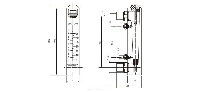 LZB-10 面(miàn)闆式流量(liang)計 | LZB-1001M | 0.1~1GPM/0.5~4LPM | 水(shui) | 不帶(dài)閥 |
