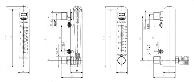 LZB-40 面闆式流(liú)量計 | LZB-4035M | 4~35 GPM/12~120LPM | 水 | 不(bú)帶閥 |