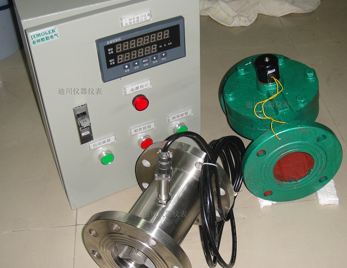 流量傳(chuan)感器 (選擇(ze)對應的(de)口徑和(hé)流量控(kòng)制流量(liang)範圍 )+泵或(huò)電磁閥(fá)門+定量(liàng)控制櫃(guì)