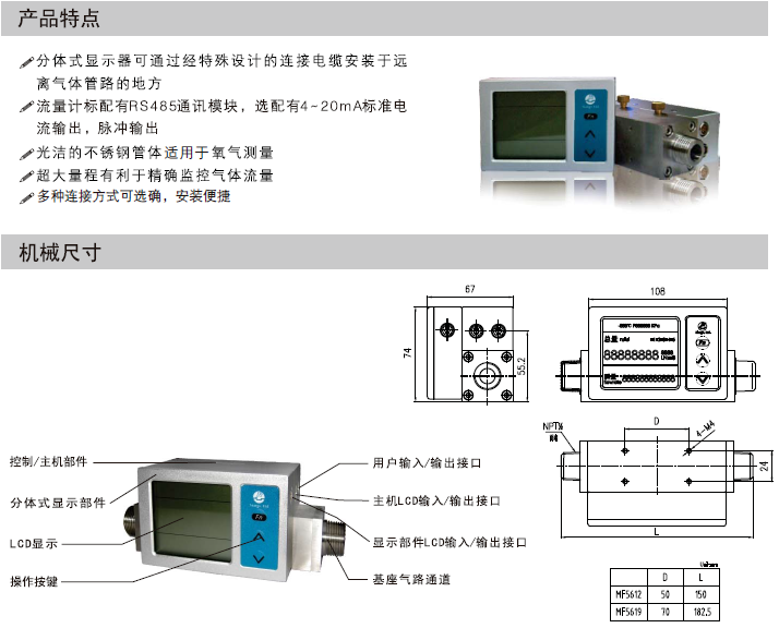 MF5612-N-300 氣體(tǐ)流量計 産品(pǐn)特點: