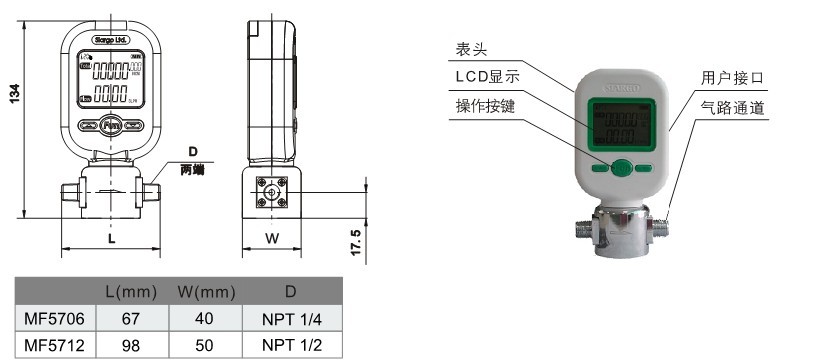 MF5712-M-200L壓(yā)縮空氣流量計機械尺寸: