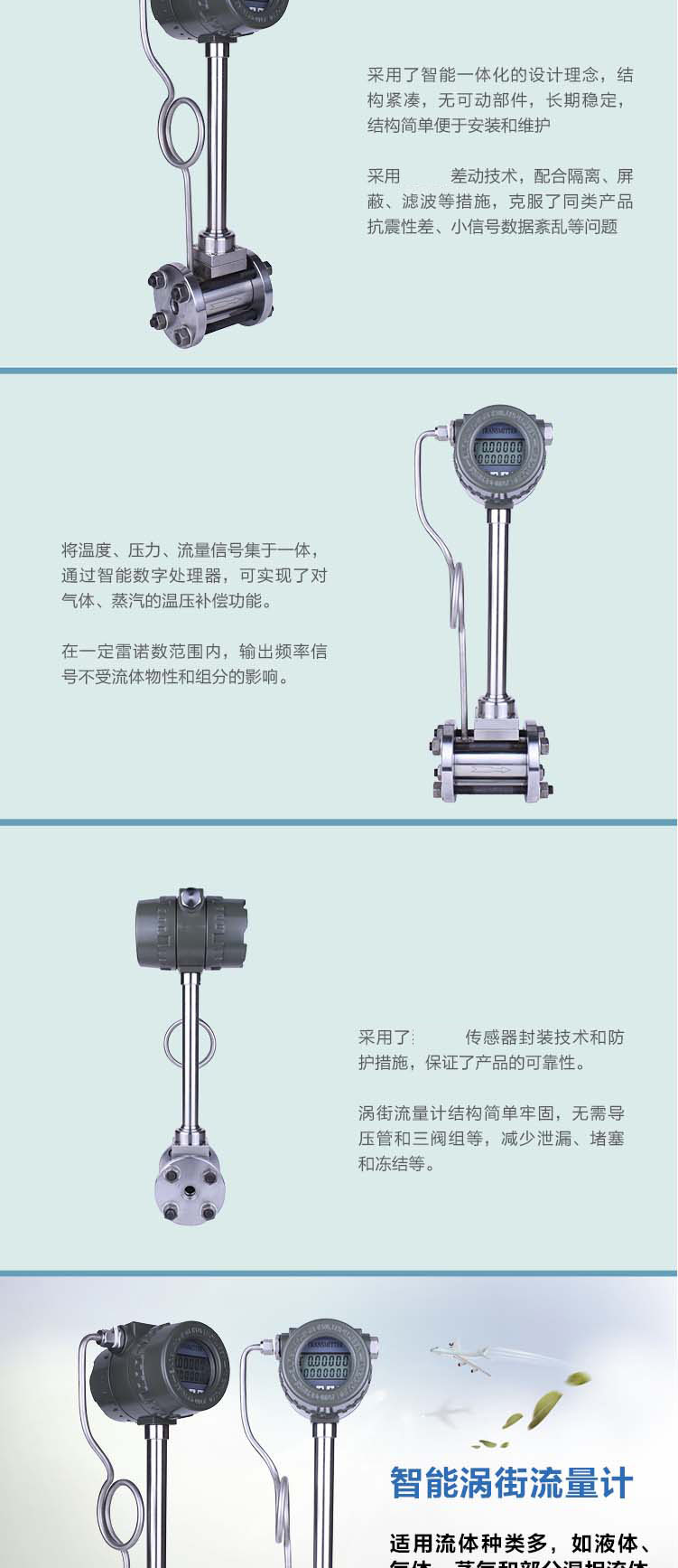 智能渦(wo)街流量計 型号爲:LUGB, 主要用(yòng)于工業管道介(jiè)質流體的流量(liang)測量,如氣體、液(yè)體、蒸氣等多種(zhǒng)介質。其特點是(shì)壓力損失小,量(liàng)程範圍⛷️大,精度(du)高,在測🚩量工況(kuàng)體積流量時幾(ji)乎不受流體密(mi)🌈度、壓力、溫度、粘(zhān)📧度等參✌️數的影(ying)響。無可動機🔞械(xiè)零件,因此可靠(kào)性高,維護量小(xiao)。儀表參數能長(zhang)期穩定。渦街流(liú)量計采用壓電(diàn)應力式傳感器(qì),可靠性💰高,可在(zài)-20℃~+250℃的工作溫度範(fàn)圍内工作。有模(mó)拟标準信号✍️,也(yě)有數字脈沖信(xin)号輸出,容易與(yǔ)計算機等數字(zi)系統配套使用(yòng),是一種😄比較先(xiān)進、理想的流量(liang)儀表。 智能一體(ti)渦街流量計